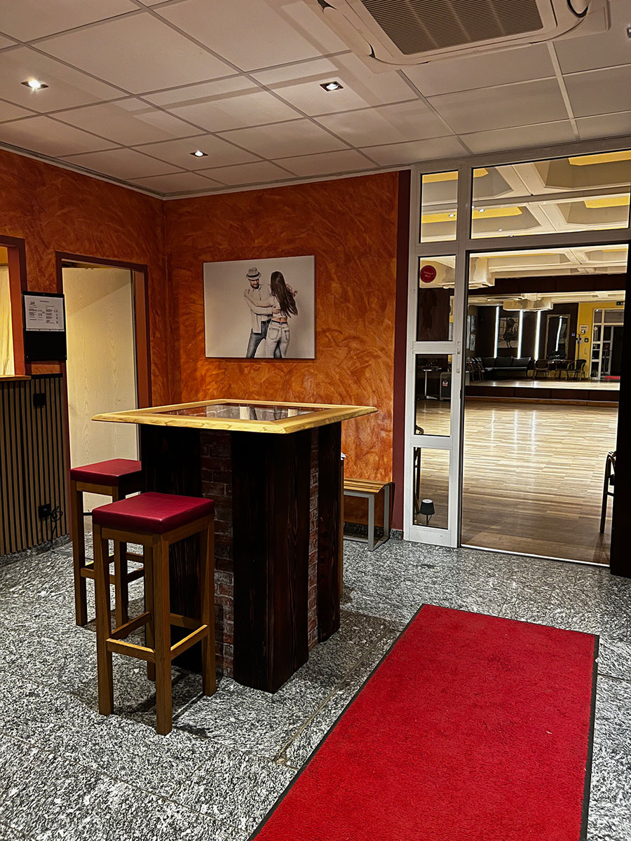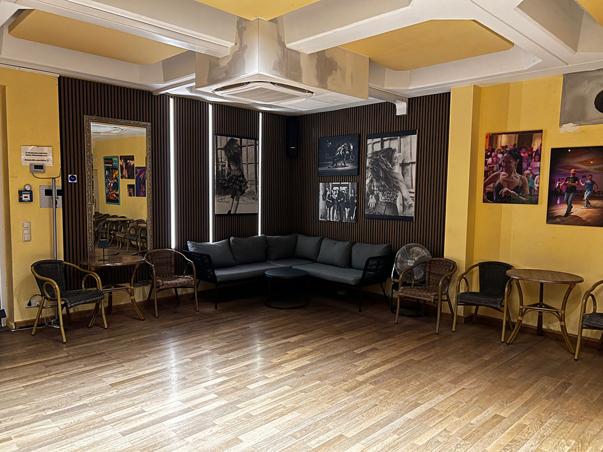 Unser gemütliches Tanzstudio in der Zenettistraße mit insgesamt 170 m² umfasst einen Aufenhaltsraum mit einer kleinen Bar sowie einen großen Tanzsaal. Außerdem ist es mit einem professionellen Tanzparkettboden, Echtspiegel und einer BOSE-Musikanlage ausgestattet.